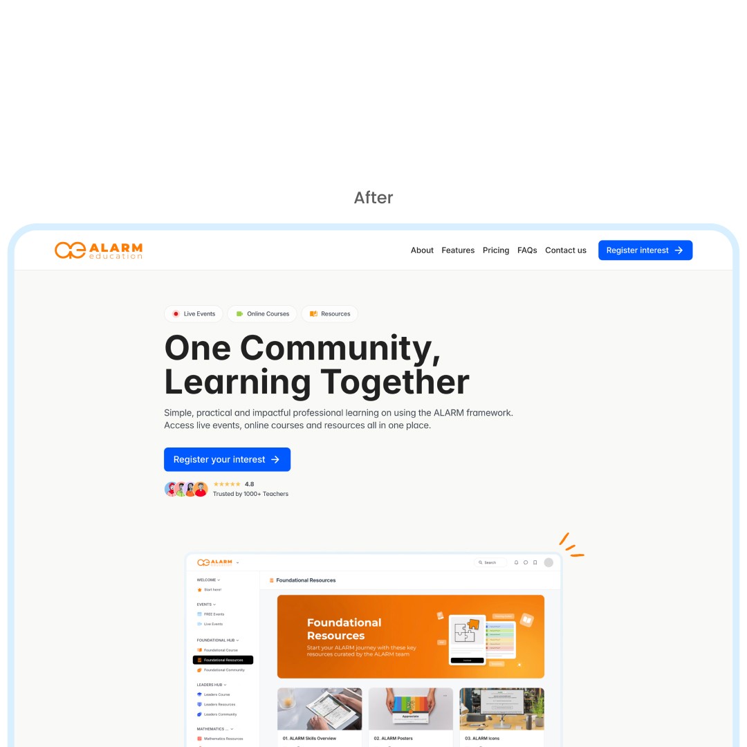 ALARM Education was scaling rapidly but their platform was holding them back. Paint-point: teachers needed two separate logins to access courses and resources, causing confusion and frustration.